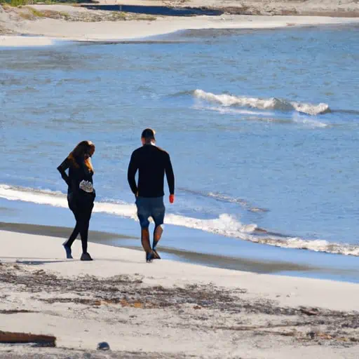 זוג נהנה מיום שמש על חוף חולי בקפריסין במהלך פברואר